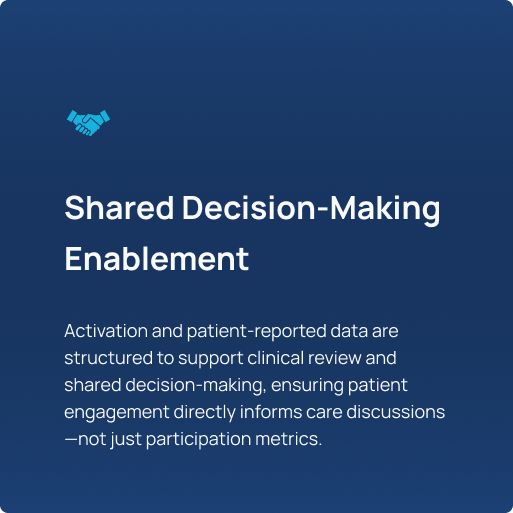 Patient-generated data are structured to support clinical review and shared decision-making—connecting activation directly to care decisions.