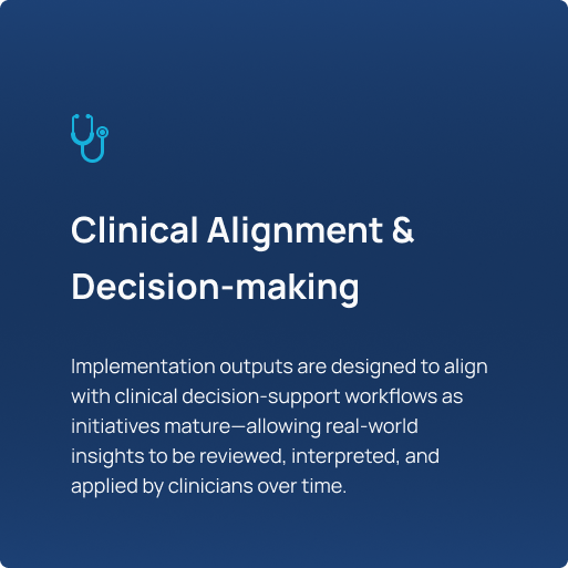 Implementation outcomes are delivered iteratively—starting with patient activation data generated within weeks, not months.